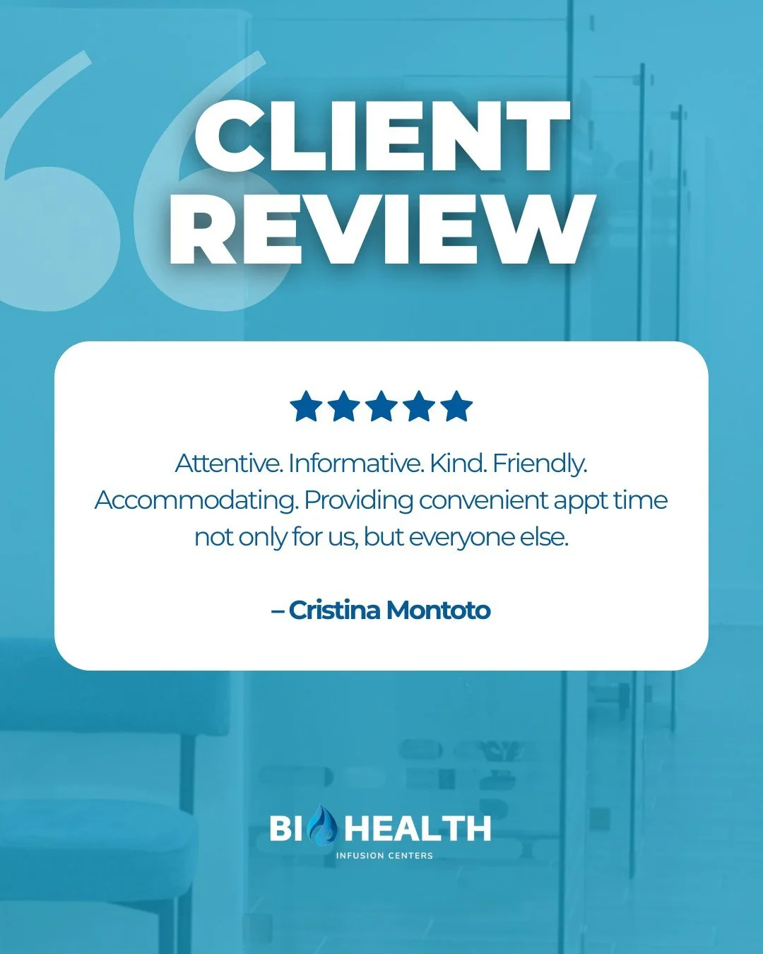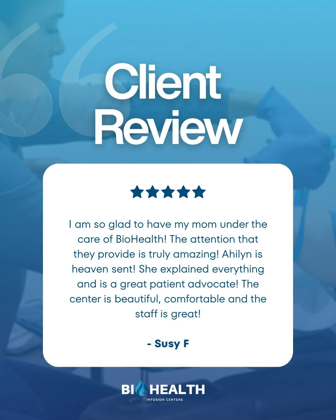 At BioHealth Infusion Center, we pledge to support our patients as if they were our own family members, starting from the intake process and continuing through the entirety of their therapy.